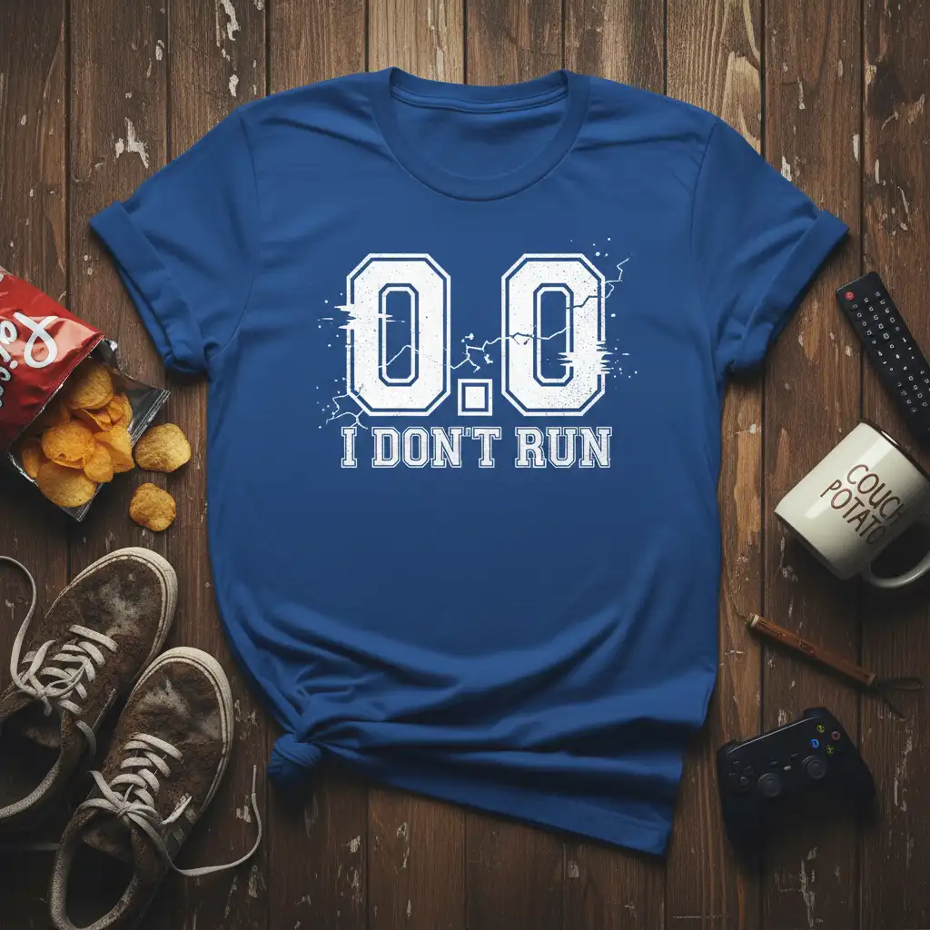 This “0.0 I Don’t Run” t-shirt is the ultimate expression of a laid-back lifestyle. It’s a humorous reminder that it’s okay to prioritize comfort and leisure. Whether you’re a gamer, a movie buff, or simply someone who loves to relax, this tee is made for you. Grab yours today and wear your love for lounging with pride!