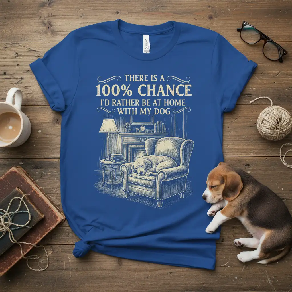 Celebrate the ultimate dog lover’s sentiment with the “100% Chance I’d Rather Be Home With My Dog” T-Shirt. This comfortable and stylish tee perfectly captures the joy of spending time with your canine companion. It’s a fantastic way to express your passion for dogs and a thoughtful gift for any pet parent.