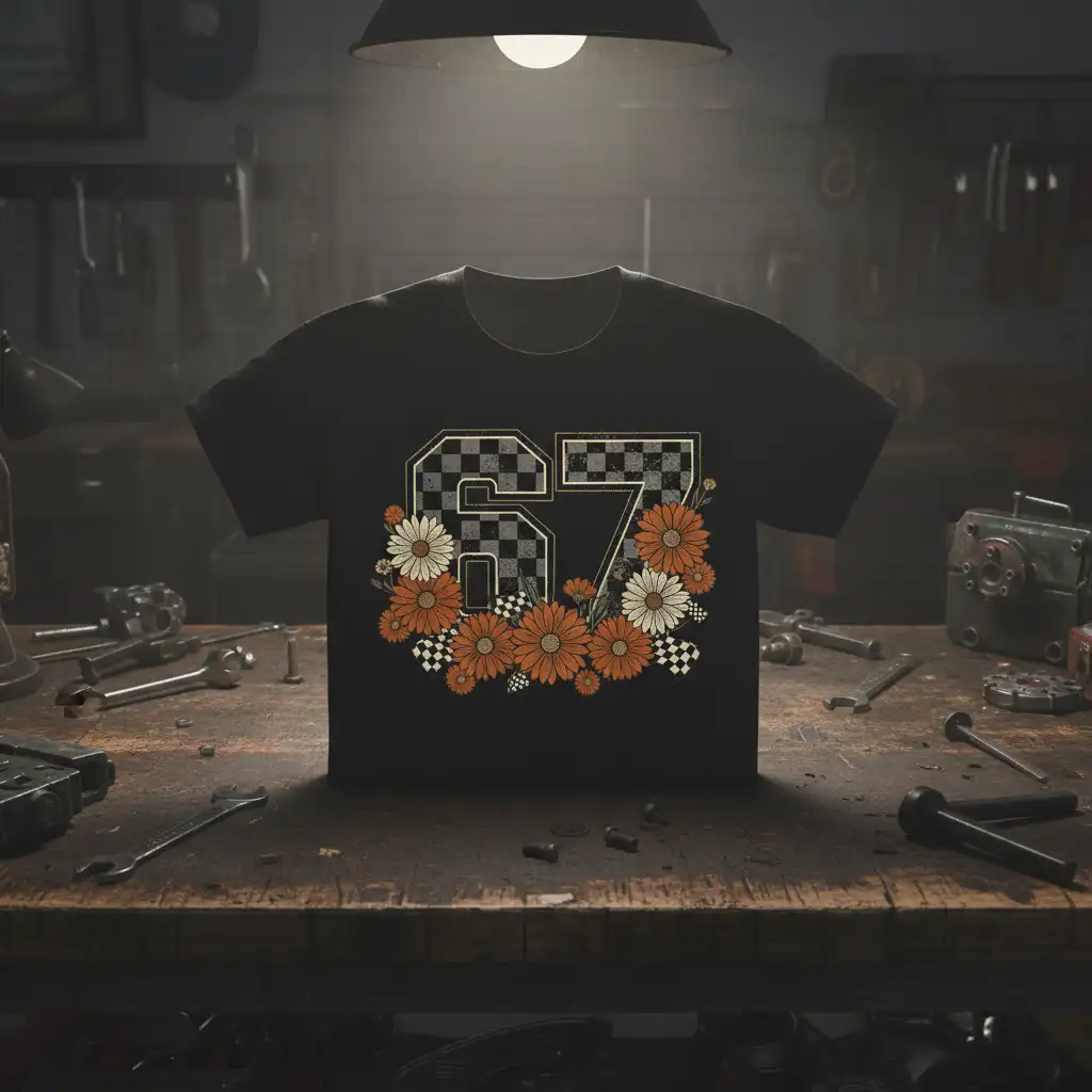 Embrace your love for speed and style with this unique ’67 t-shirt, featuring retro flowers and a classic checkered flag design. It’s the perfect way to showcase your enthusiasm for racing and vintage aesthetics. Made from comfortable, high-quality fabric, this tee makes a fantastic gift for any speed enthusiast or for celebrating a special birthday number.