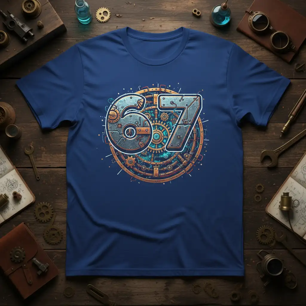 The visual appeal of this shirt lies in its complexity and attention to detail. Each gear and bolt within the design is rendered with precision, creating a sense of depth and realism. This makes the “67” design a standout piece, offering a visual narrative of mechanical wonder. It’s perfect for casual outings, themed events, or as a unique gift that’s sure to impress anyone with an eye for detailed and imaginative graphics.