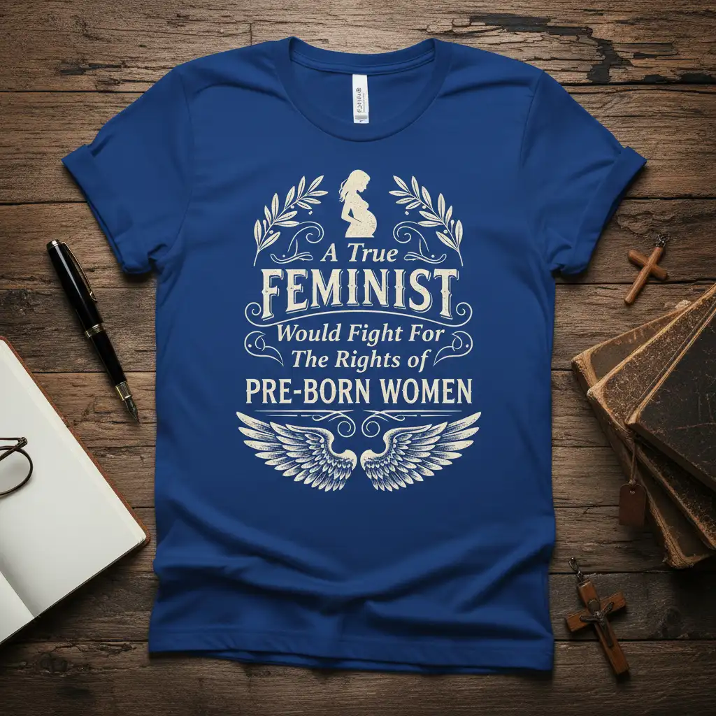 Embrace the opportunity to make a statement and advocate for what you believe in with this compelling t-shirt. The “A True FEMINIST Would Fight For The Rights of PRE-BORN WOMEN” design is more than just a graphic; it’s a testament to your commitment to a cause. It’s crafted for durability and comfort, ensuring you can wear your message proudly for years to come. Don’t miss out on the chance to own a piece of apparel that speaks volumes and inspires action. Order yours today and join the movement!