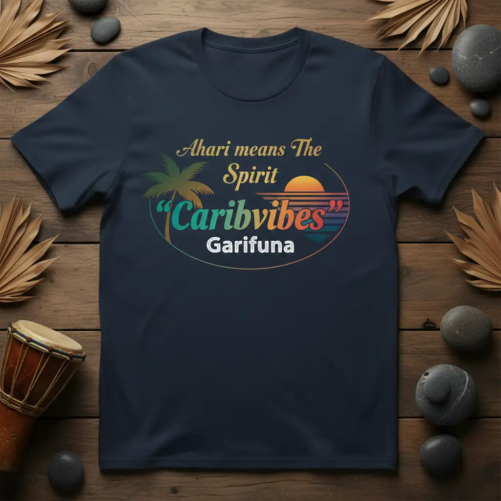 Ahari means The Spirit “Caribvibes” Garifuna embodies a profound connection to heritage and a vibrant celebration of Caribbean culture. This statement t-shirt is designed for those who wish to express their pride in their Garifuna roots and embrace the joyful spirit of the islands. It serves as a wearable piece of art, beautifully merging cultural significance with modern style. Wear it proudly to share the essence of “Caribvibes” and the true meaning of Ahari.