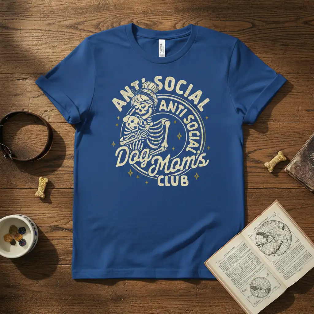 The “Anti Social Dog Mom’s Club” design isn’t just a graphic; it’s a declaration of lifestyle. It resonates with those who find joy in the simple pleasures of dog ownership and aren’t afraid to admit they prefer a cozy night in. The skeleton graphic adds a playful, slightly edgy touch that stands out from typical pet-themed apparel. It’s a perfect blend of cute, funny, and cool, designed to make you smile every time you wear it.