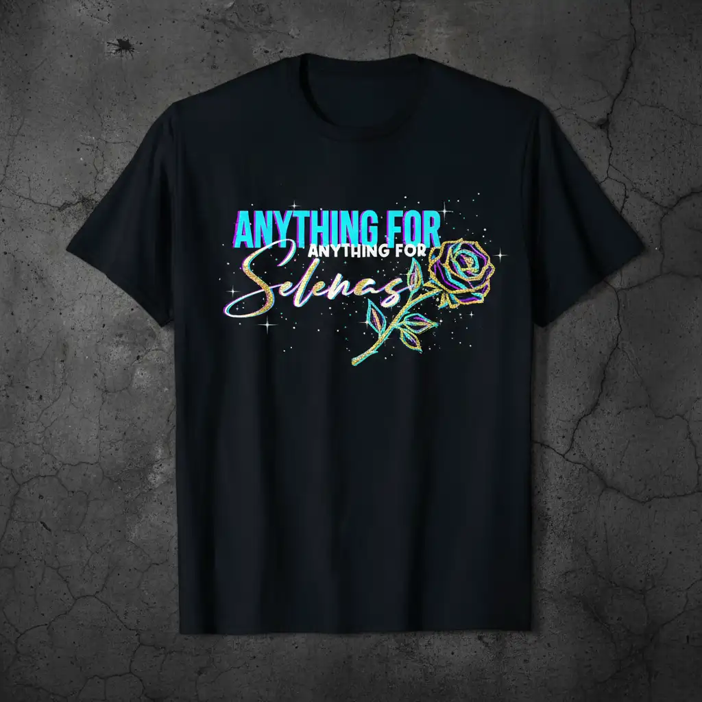 Anything For Anything For Selenas resonates deeply with fans, celebrating the enduring legacy of a beloved music icon. This t-shirt captures the spirit and passion that millions felt for Selena Quintanilla, making it a must-have for any devoted follower. The design features vibrant, retro-inspired typography paired with a shimmering rose, embodying the glamour and artistry that defined her career. It’s more than just apparel; it’s a statement of admiration and a connection to a cultural phenomenon. Wear it proudly to show your appreciation for the Queen of Cumbia and her unforgettable music.