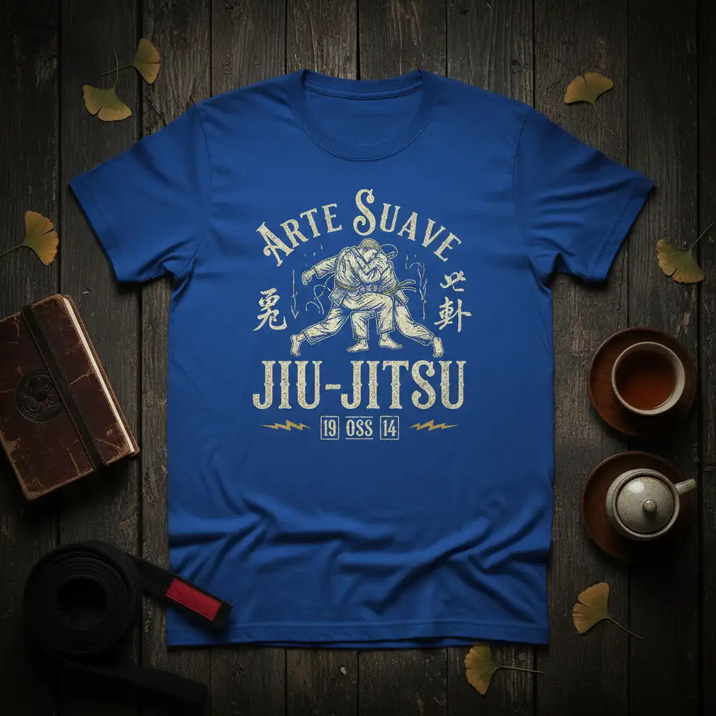 Pick from Black, Navy, Royal, Dark Heather, Red, and White to match your mood and wardrobe staples. Each colorway keeps the Arte Suave Jiu-Jitsu design clear and photo-ready for everyday wear.