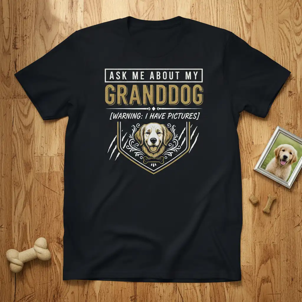ASK ME ABOUT MY GRANDDOG [WARNING: I HAVE PICTURES]. This statement tee is designed for those who cherish their four-legged grandchildren and can’t wait to share every adorable detail. It’s more than just apparel; it’s a badge of honor for proud dog grandparents everywhere. The playful warning ensures anyone who asks will be treated to a delightful photo album. This shirt is perfect for casual outings, family gatherings, or simply lounging at home with your favorite furry friend.