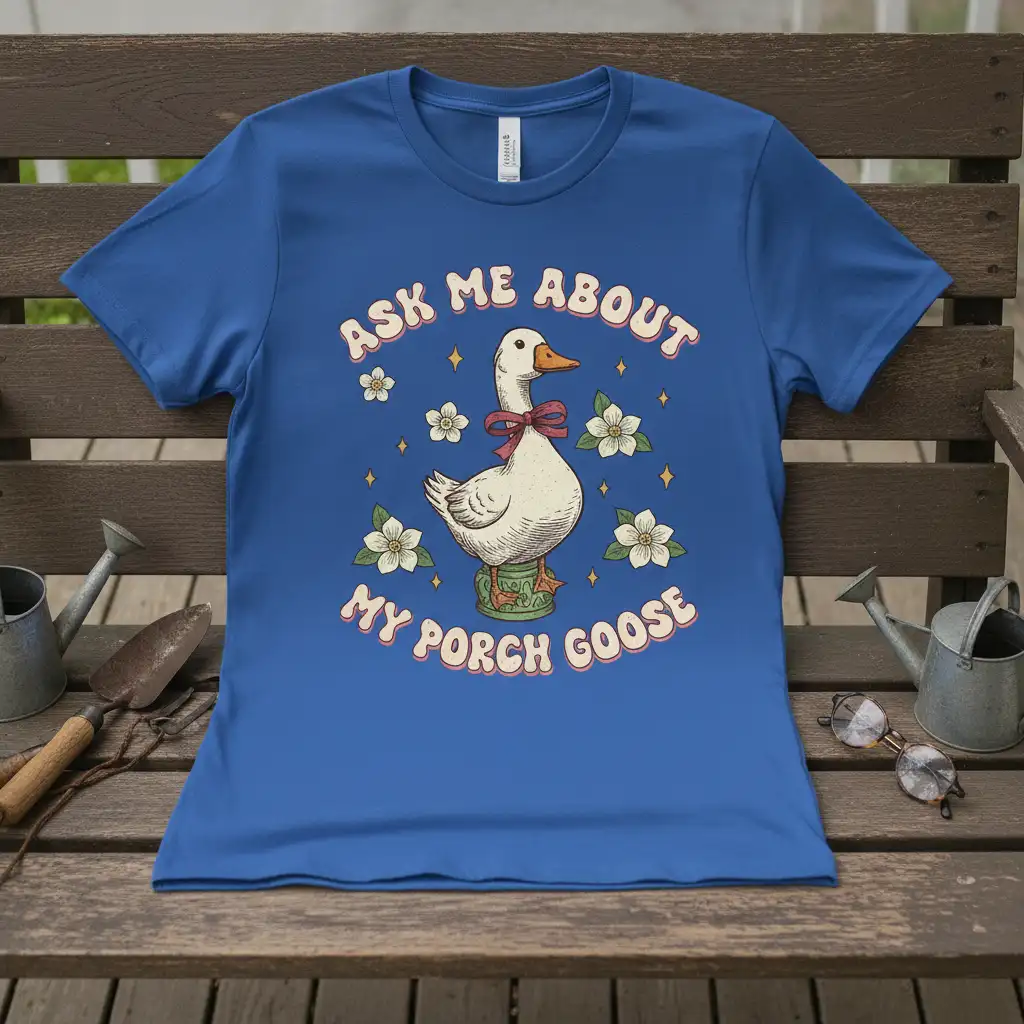 Don’t miss out on the opportunity to own this charming “Ask Me About My Porch Goose” t-shirt. It’s a fantastic way to express your unique personality and your love for these wonderful birds. Whether you’re buying it for yourself or as a gift, this tee is guaranteed to be a hit. Order yours today and let the conversations begin about your favorite porch goose!