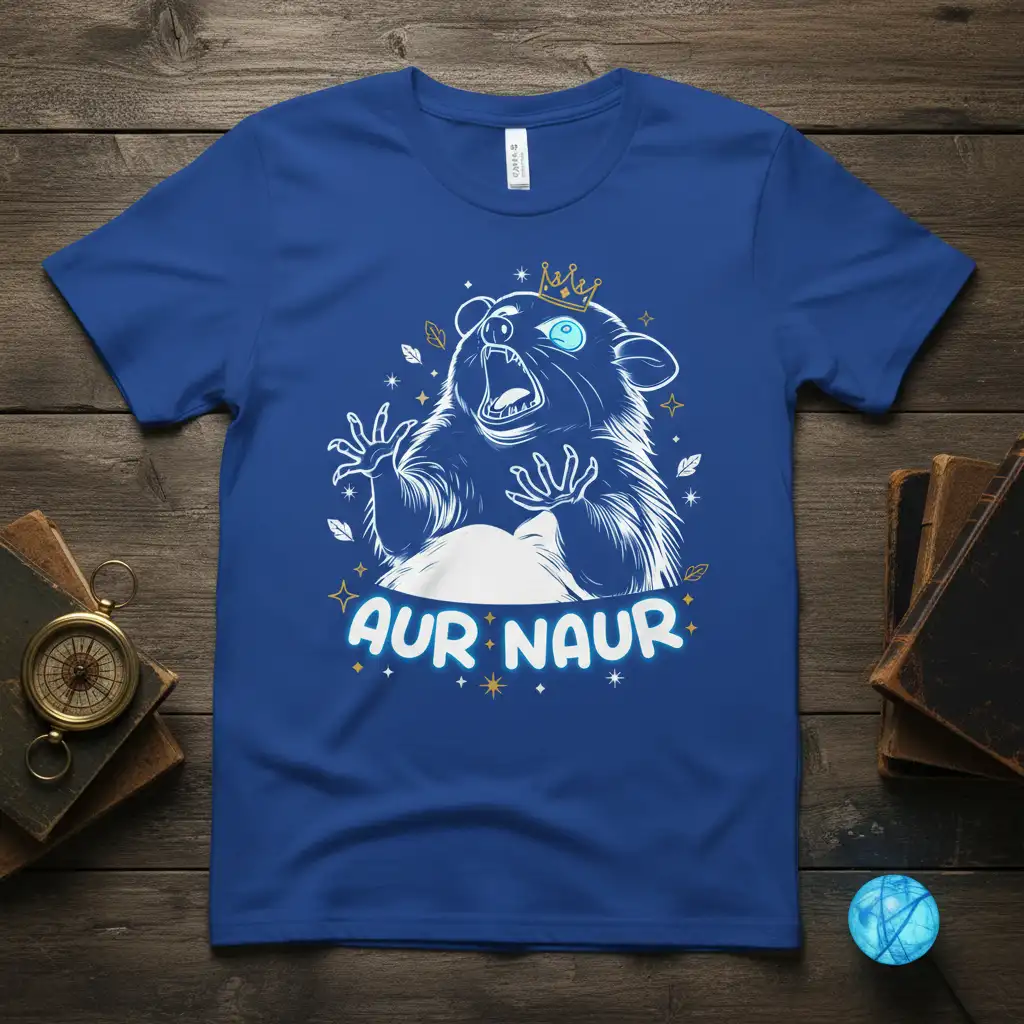 This Aur Naur tee is designed to be a conversation starter, instantly connecting you with others who appreciate the same niche humor. The detailed illustration of the crowned hamster adds a layer of personality and charm, making the meme come alive on the fabric. Its unique appeal lies in its ability to convey a complex emotion or situation with just a few words and an iconic image.