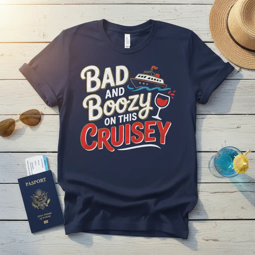 BAD AND Boozy ON THIS Cruisey T-Shirt is the ultimate statement piece for your next vacation. This design perfectly captures the carefree spirit of cruising, blending relaxation with a touch of celebratory indulgence. It’s crafted for travelers who know how to have a good time and make unforgettable memories on the open sea. Whether you’re setting sail for a weekend getaway or a grand adventure, this tee is your perfect companion for fun and laughter. Get ready to embrace the vacation vibes and stand out from the crowd.