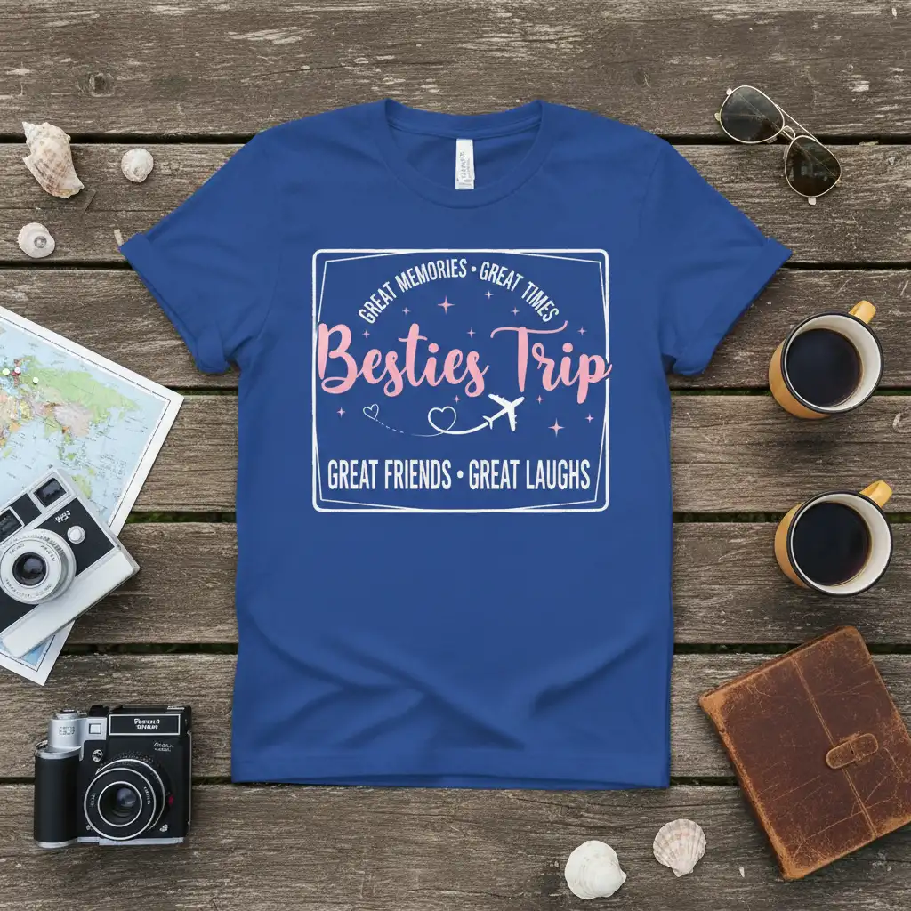Imagine wearing this on your next vacation, turning heads and sparking smiles as others recognize the spirit of friendship and adventure it represents. It’s a simple yet powerful way to express your appreciation for your best friends and the experiences you create together. This design is perfect for commemorating milestone trips or just celebrating the everyday magic of your friendships.