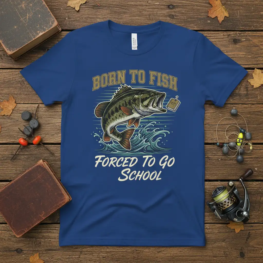 This t-shirt is designed for the dedicated angler, capturing the essence of a life driven by the pursuit of the perfect catch. The bold text, “Born to Fish,” is complemented by the humorous twist, “Forced to Go School,” creating a design that resonates with anyone who feels the irresistible pull of the lake, river, or ocean. It’s a conversation starter and a badge of honor for those who understand that sometimes, duty calls, but the heart always yearns for the water.