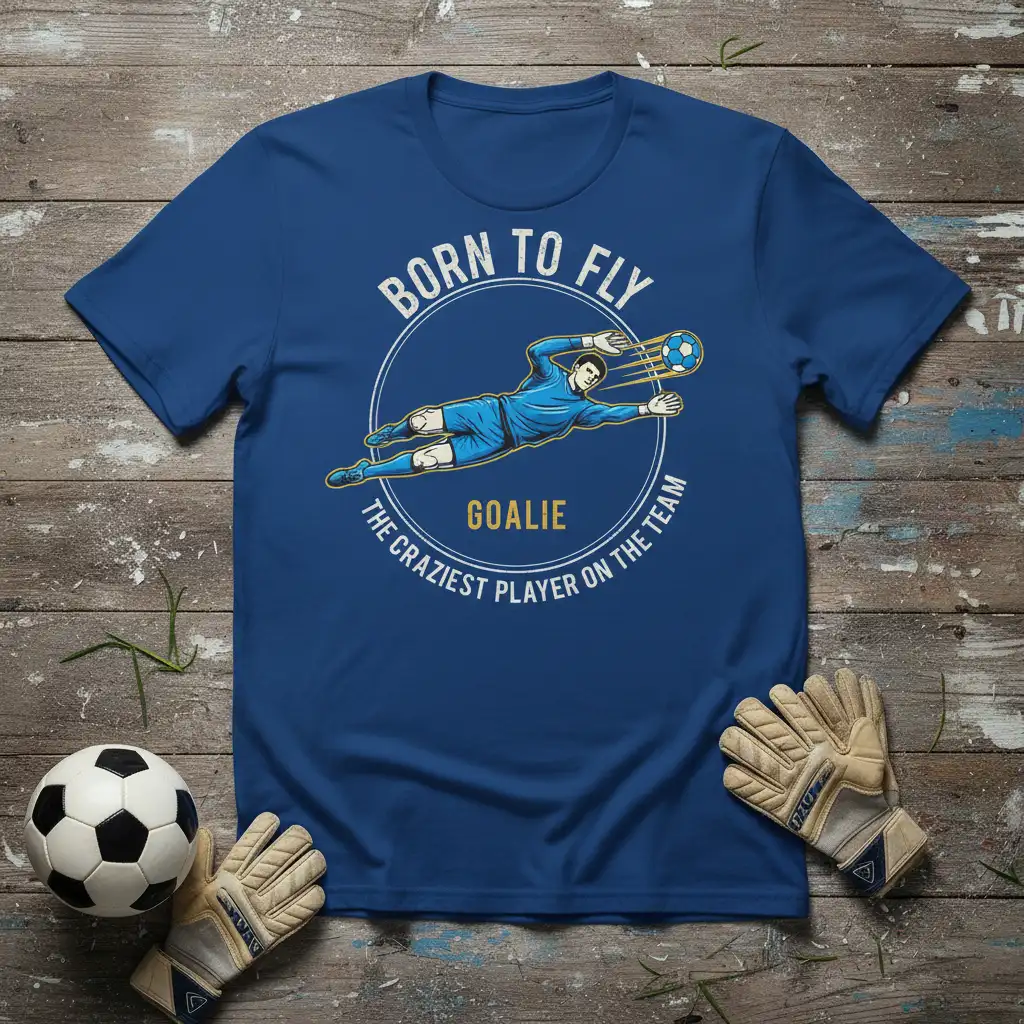 This shirt is more than just fan gear; it’s a celebration of the dedication, agility, and courage that goalkeepers bring to the game. It embodies the spirit of “Born to Fly” and the pride of being “The Craziest Player on the Team.” Wear it with confidence and let your passion for soccer shine through.