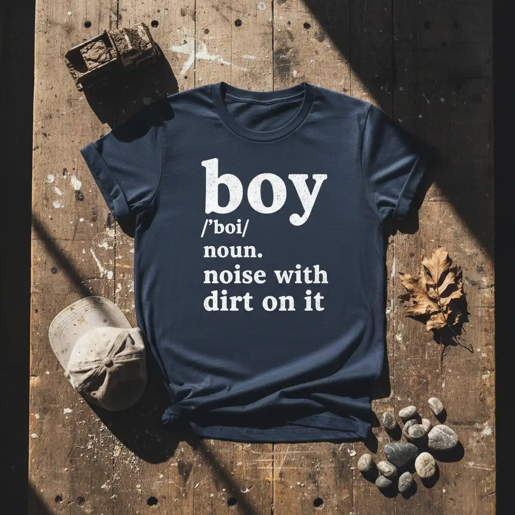 The “noise with dirt on it” aspect of this definition perfectly encapsulates the vibrant energy and adventurous spirit of young boys. It acknowledges that childhood is a time for exploration, discovery, and a healthy dose of messiness. This t-shirt is a badge of honor for boys who aren’t afraid to get a little dirty while having the time of their lives. It’s a playful nod to the uncontainable spirit of childhood.