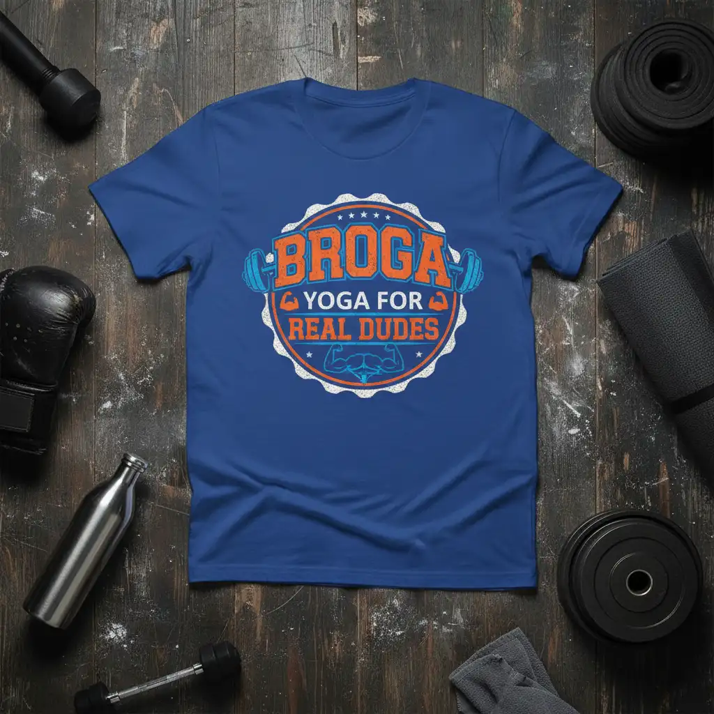 This eye-catching design captures the essence of “Broga,” a term that perfectly blends the worlds of bodybuilding and yoga. Featuring bold typography and dynamic graphics, the “BROGA YOGA FOR REAL DUDES” t-shirt is crafted for those who lift, stretch, and conquer. It’s a conversation starter that highlights a fun, yet serious approach to fitness and well-being.