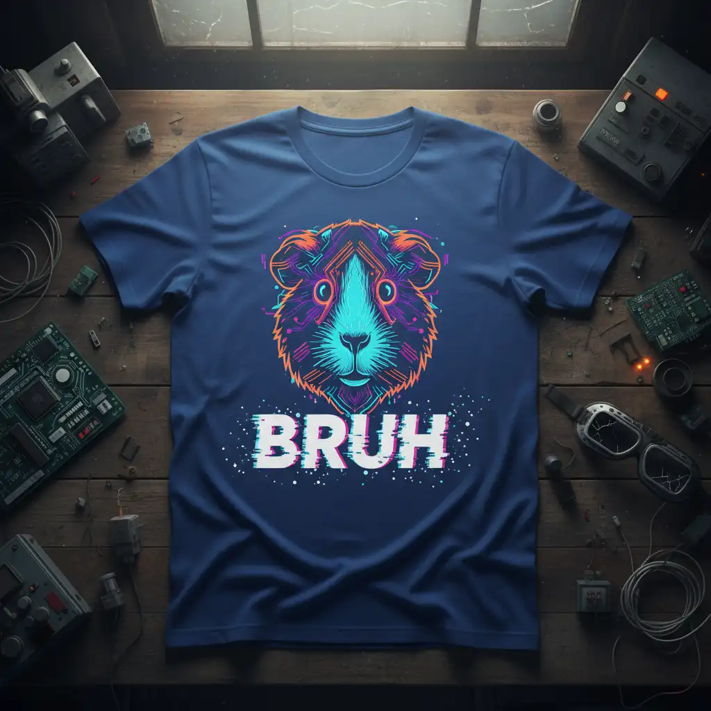 BRUH this unique guinea pig t-shirt is designed to capture those moments of unexpected realization and humorous disbelief. The vibrant, neon-infused graphic features a guinea pig with a cool, glitchy effect, making it a standout piece for any fan of internet culture and quirky pet designs. This tee is more than just apparel; it’s a conversation starter that perfectly encapsulates the essence of a classic meme. Whether you’re a gamer, a pet owner, or just someone who appreciates a good laugh, this shirt is sure to bring a smile to your face and those around you. It’s the ideal way to add a touch of personality and humor to your everyday wardrobe.