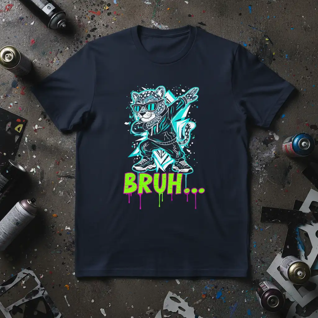 BRUH… this t-shirt is an absolute must-have for anyone who appreciates bold graphics and a good dose of internet humor. It features a vibrant design that perfectly captures the essence of modern meme culture and streetwear style. The dynamic leopard character, striking a popular pose, is guaranteed to make a statement. Its eye-catching neon colors and dripping accents add a unique urban flair that stands out from the crowd. This tee is more than just apparel; it’s a conversation starter and a wearable piece of pop culture. Get ready to express your witty side and embrace the vibe with this unforgettable graphic design.