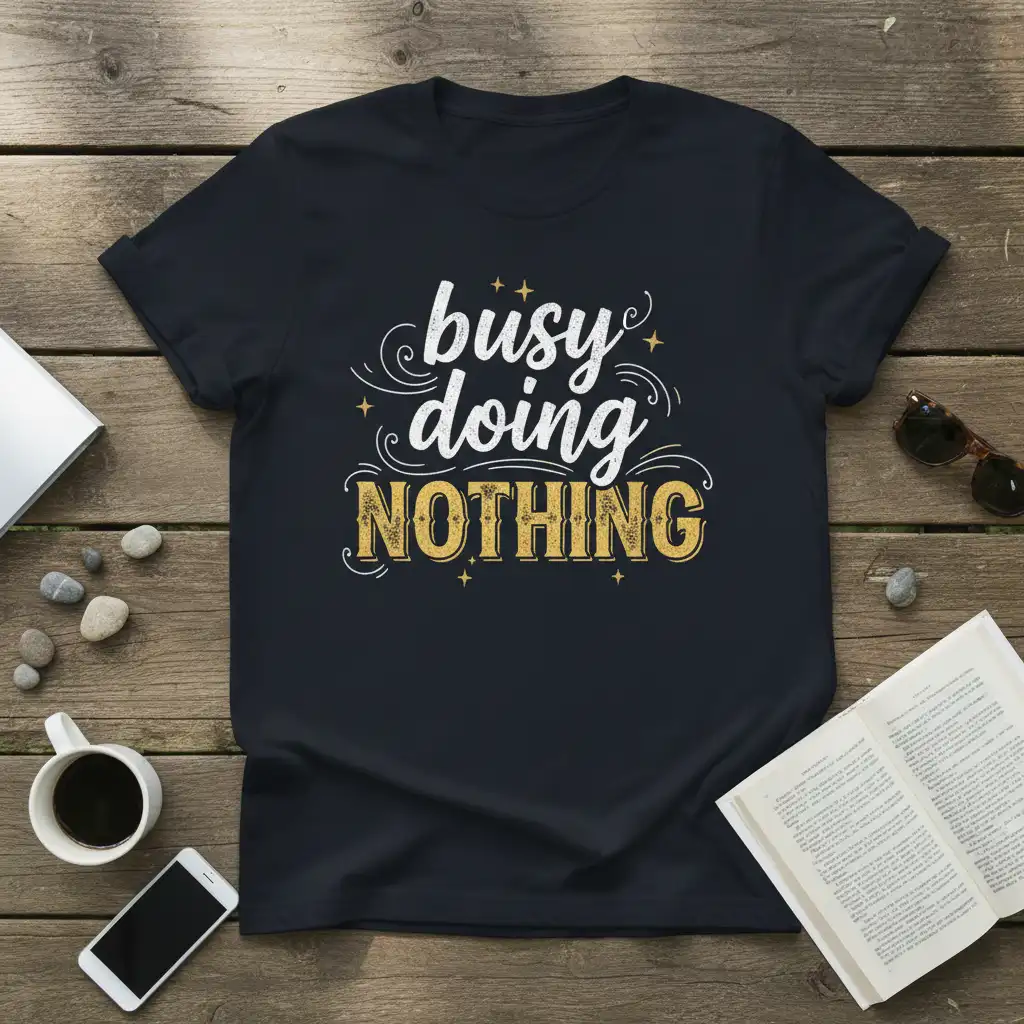 Busy doing NOTHING is more than just a phrase; it’s a lifestyle, a philosophy, and for many, a cherished aspiration. This t-shirt captures that sentiment perfectly, offering a humorous and stylish way to express your dedication to the art of relaxation. It’s designed for those who understand the profound joy of unwinding, taking a break, and simply existing without the pressure of constant activity. Whether you’re lounging at home, enjoying a quiet weekend, or need a reminder to embrace downtime, this tee is your perfect companion.