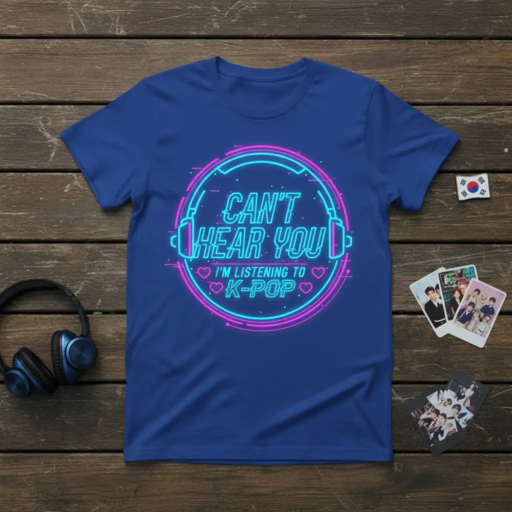The “Can’t Hear You I’m Listening To K-Pop” design is a testament to the all-consuming nature of K-pop music. It speaks to those moments when the music is so captivating that the outside world fades away. This t-shirt is an ideal way to showcase your identity as a K-pop fan, celebrating the genre that brings so much joy and excitement into your life. It’s a wearable anthem for every devoted listener.