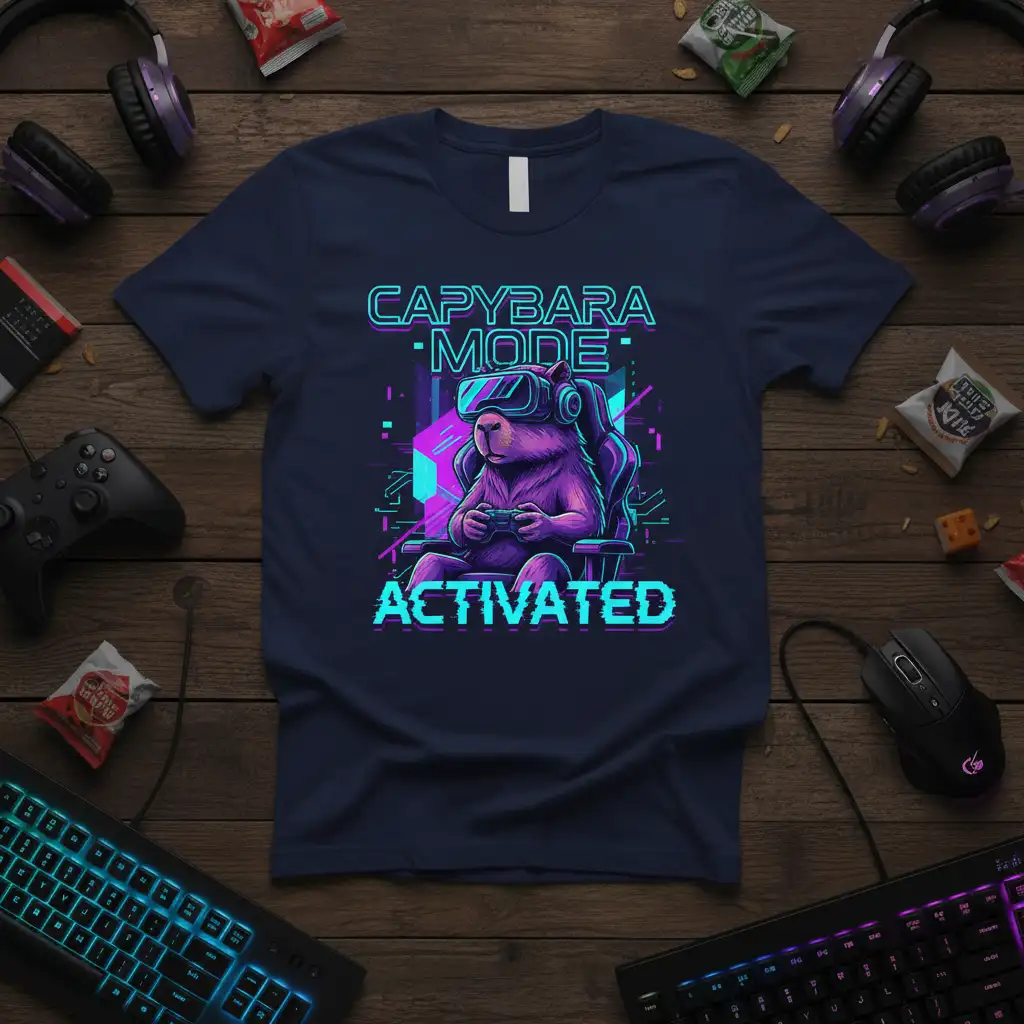 This shirt isn’t just about the design; it’s about the feeling it evokes. It represents that moment when you’ve switched on your console, put on your headset, and entered a state of pure gaming focus. The “CAPYBARA MODE ACTIVATED” slogan perfectly encapsulates this dedicated, immersive experience. It’s a humorous nod to how seriously we can take our gaming, all while keeping it fun and light-hearted.