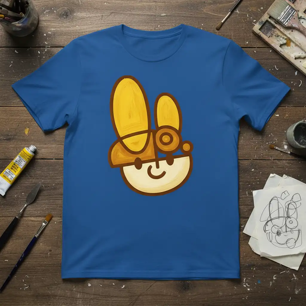 Dive into the delightful world of our Cartoon Rabbit Character graphic tee, a wearable piece of art designed to stand out. The charming rabbit, adorned with a stylish hat and functional goggles, embodies a spirit of adventure and creativity. Its bold outlines and textured, painterly finish give the design a unique, handcrafted feel that sets it apart from ordinary graphics. This tee is a fantastic way to express your personality and passion for artistic expression.