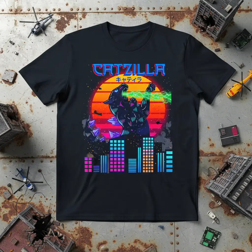 Catzilla Japanese Kaiju Cat T-Shirt Retro 80s Graphic