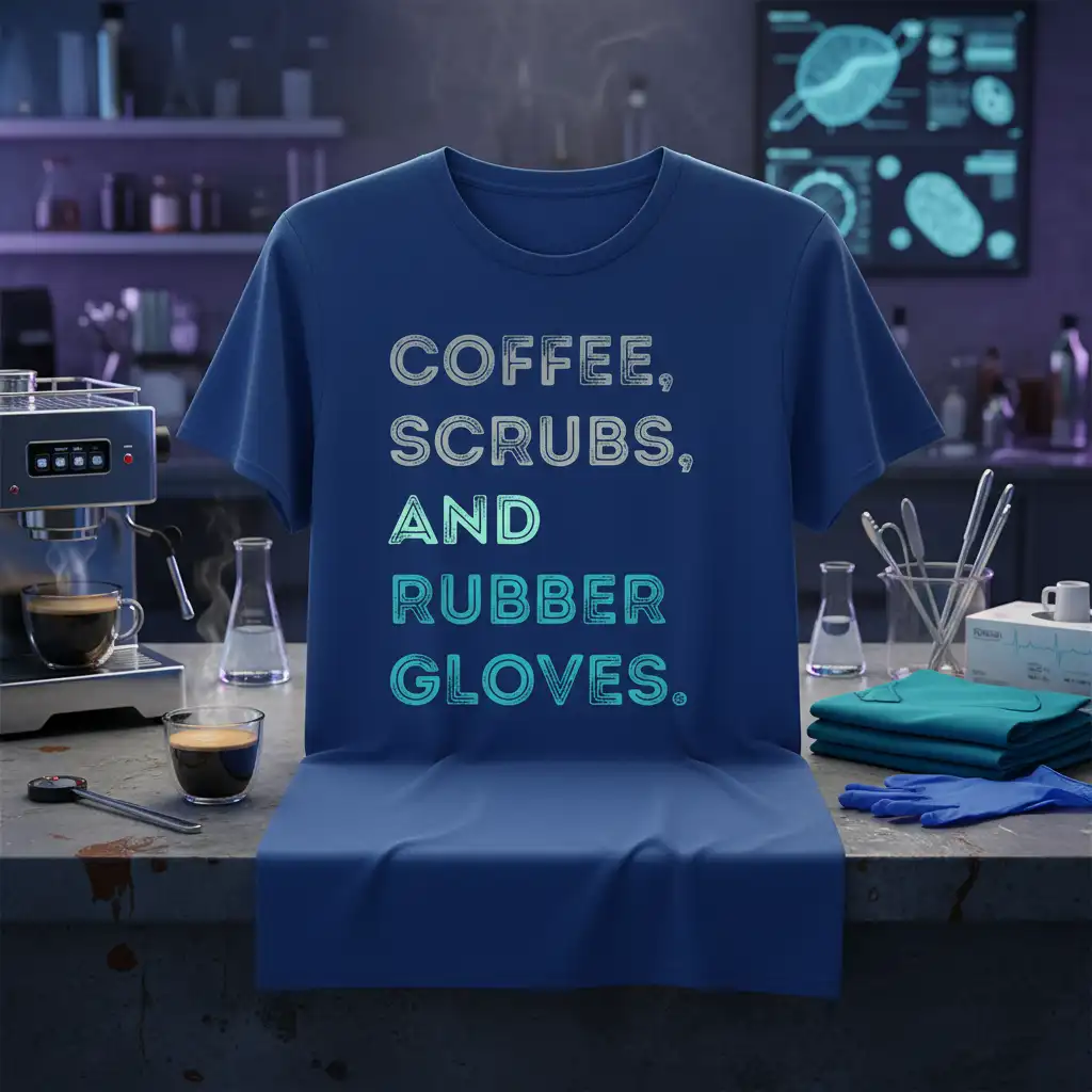 This COFFEE, SCRUBS, AND RUBBER GLOVES. T-Shirt is made for real life — soft enough to wear all day and durable enough to keep its shape and color wash after wash. Whether you’re out running errands or relaxing at home, it fits right into the moment.