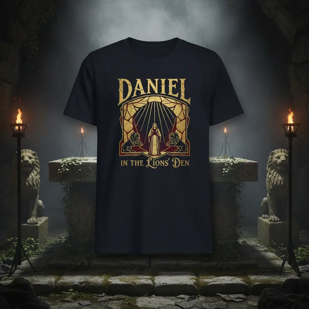 This narrative serves as a powerful reminder that even in the darkest of times, faith can provide strength and deliverance. The design is rendered with a vintage, distressed aesthetic, giving it a timeless appeal that resonates with the ancient story it represents. It’s perfect for anyone who draws strength from their faith and wishes to share that inspiration through their personal style. The detailed artwork ensures that the message is not only seen but felt.