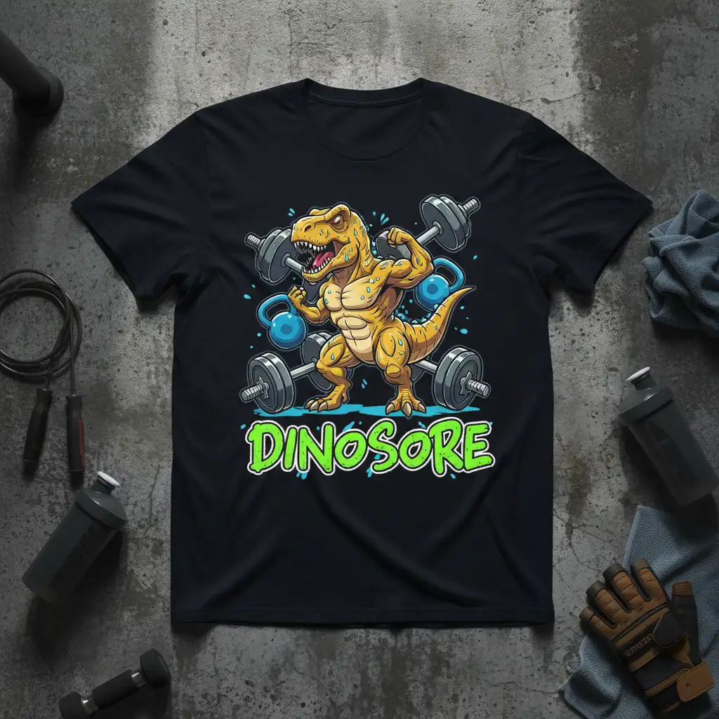 Ready to add some roaring fun to your workout wardrobe? The DINOSORE t-shirt is waiting for you. It’s the ultimate way to express your passion for fitness, dinosaurs, and a good dose of humor. This shirt is crafted for comfort and designed to inspire, making it a fantastic addition to any active lifestyle. Don’t miss out on the chance to own this unique piece of apparel that’s sure to become a favorite. Order yours now and start your fitness journey with a prehistoric roar!