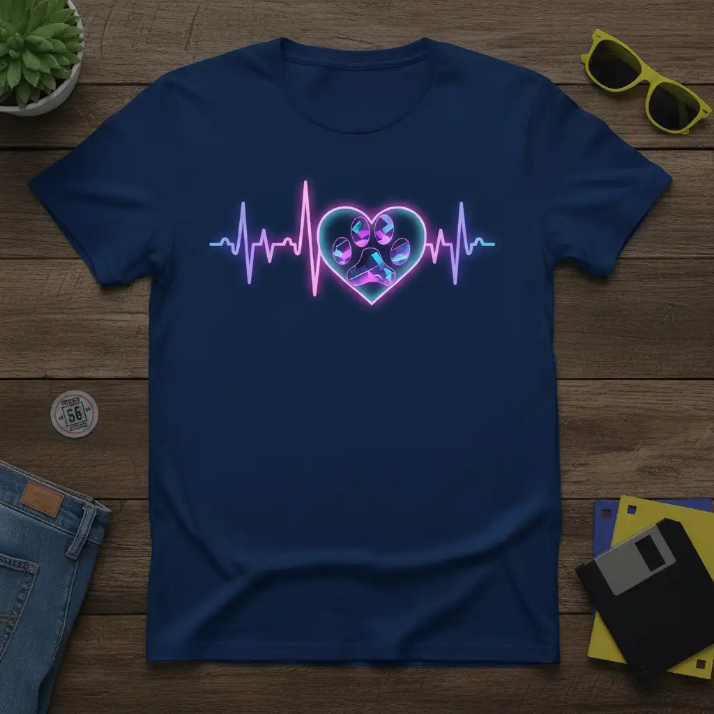 This captivating Dog Heartbeat Paw Print T-Shirt is designed for those who believe their life’s rhythm is set by the pitter-patter of paws. The neon-infused graphic features a stylized heartbeat line that flows into a radiant heart, beautifully enclosing a paw print. This visual metaphor powerfully communicates the profound bond and the essential role dogs play in our well-being and happiness. It’s an ideal way to express your passion for dogs without saying a word.