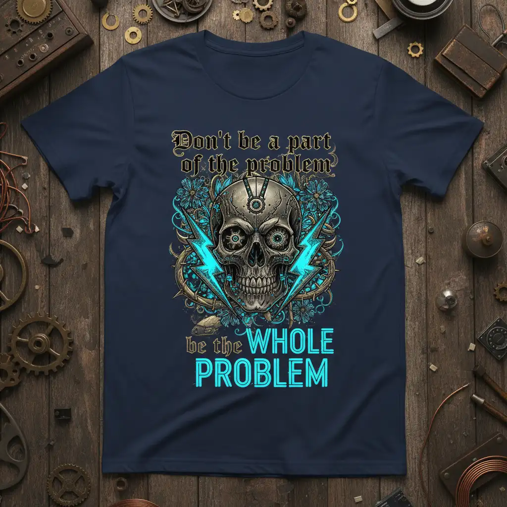 Don’t be a part of the problem be the WHOLE PROBLEM T-Shirt is designed for those who dare to be different and embrace their audacious spirit. This apparel isn’t just clothing; it’s a declaration of independence, a symbol of rebellion, and a conversation starter all rolled into one. The striking visual elements and the powerful message come together to create a unique statement piece that resonates with individuals who are unapologetically themselves. It’s perfect for anyone who enjoys dark humor, edgy designs, and expressing their bold personality through their fashion choices.