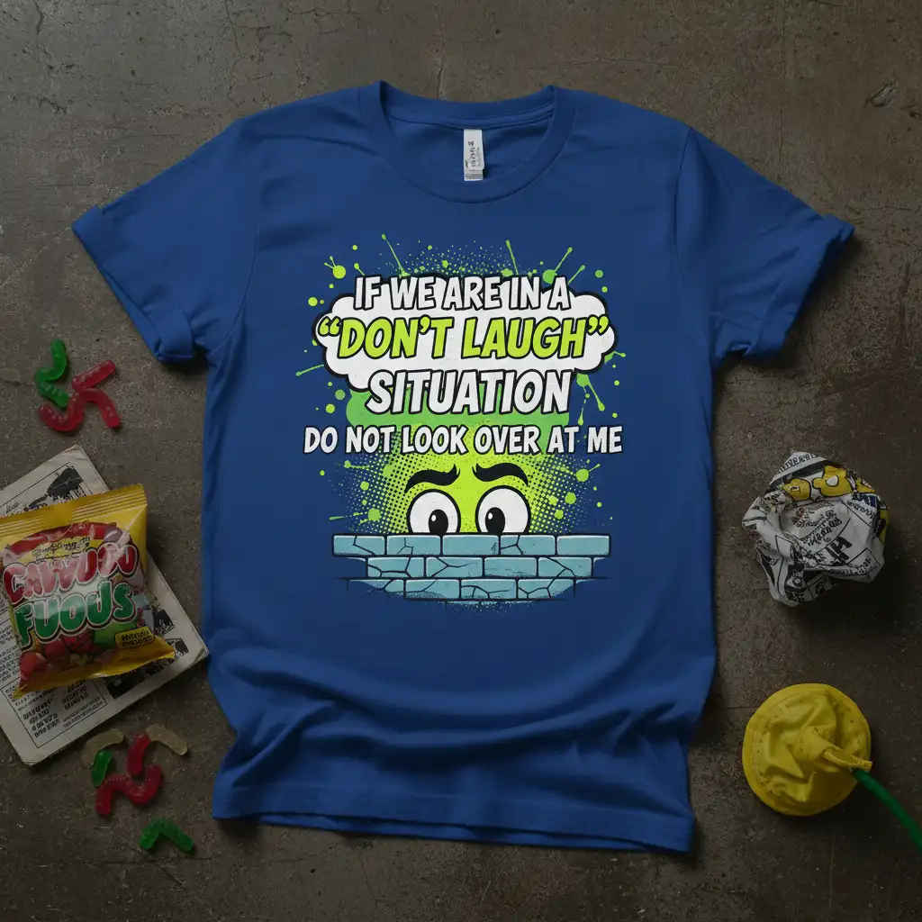 Embrace the humor with the “If We Are In A Don’t Laugh Situation Do Not Look Over At Me” T-Shirt. This design captures those moments when you absolutely cannot crack a smile. It’s crafted for comfort and makes a hilarious gift for anyone who appreciates a good laugh and relatable situations.