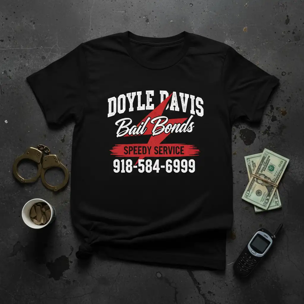 Don’t miss out on the opportunity to own this essential piece of apparel that speaks volumes about support and reliability. The **DOYLE DAVIS Bail Bonds SPEEDY SERVICE 918-584-6999** t-shirt is more than just clothing; it’s a symbol of trust and efficiency in the legal support system. It’s perfect for making a statement, keeping vital information handy, or gifting to someone who values prompt legal assistance. Add this versatile and impactful t-shirt to your collection and wear your support with confidence. Secure yours now and be a walking advertisement for dependable bail bond services!