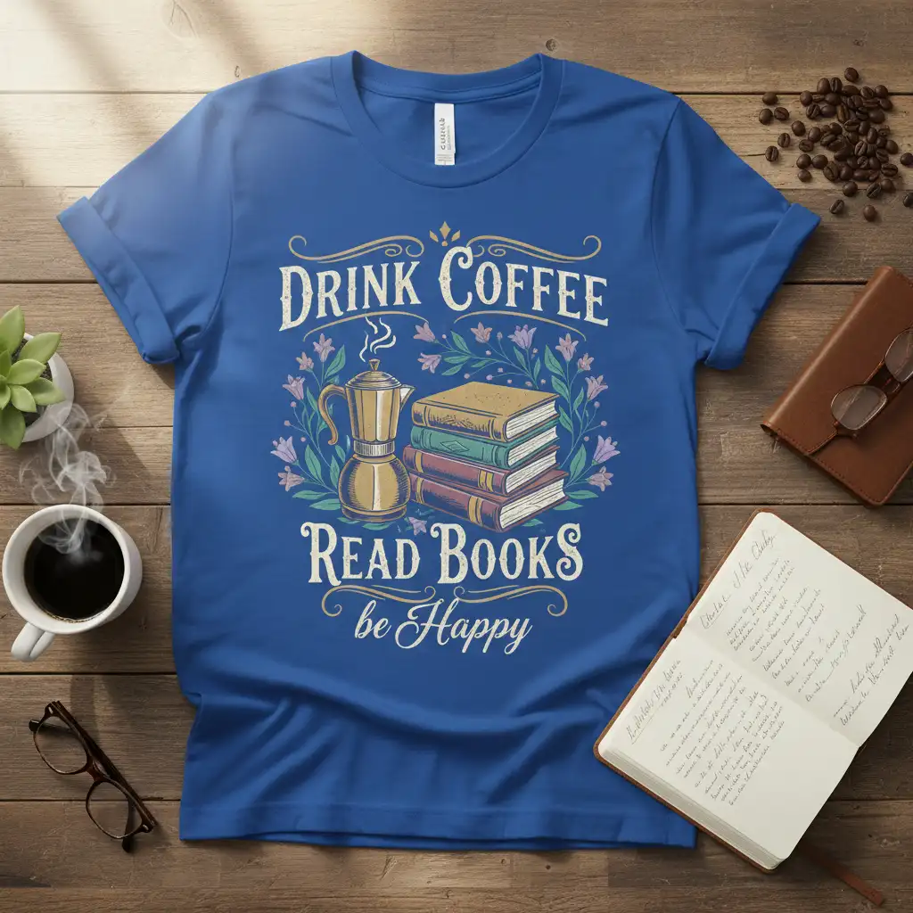 DRINK COFFEE READ BOOKS be Happy is more than just a slogan; it’s a lifestyle embraced by countless individuals who find solace and joy in the simple, yet profound, pleasures of life. This sentiment perfectly encapsulates the ideal day for many, combining the invigorating warmth of coffee with the captivating escape of a good book. It’s a philosophy that resonates deeply, offering a path to contentment and happiness. If you’re someone who believes that a cup of coffee and a compelling story can solve most of life’s little problems, then this design is tailor-made for you. It’s a badge of honor for those who appreciate the cozy moments and the intellectual stimulation that reading provides.