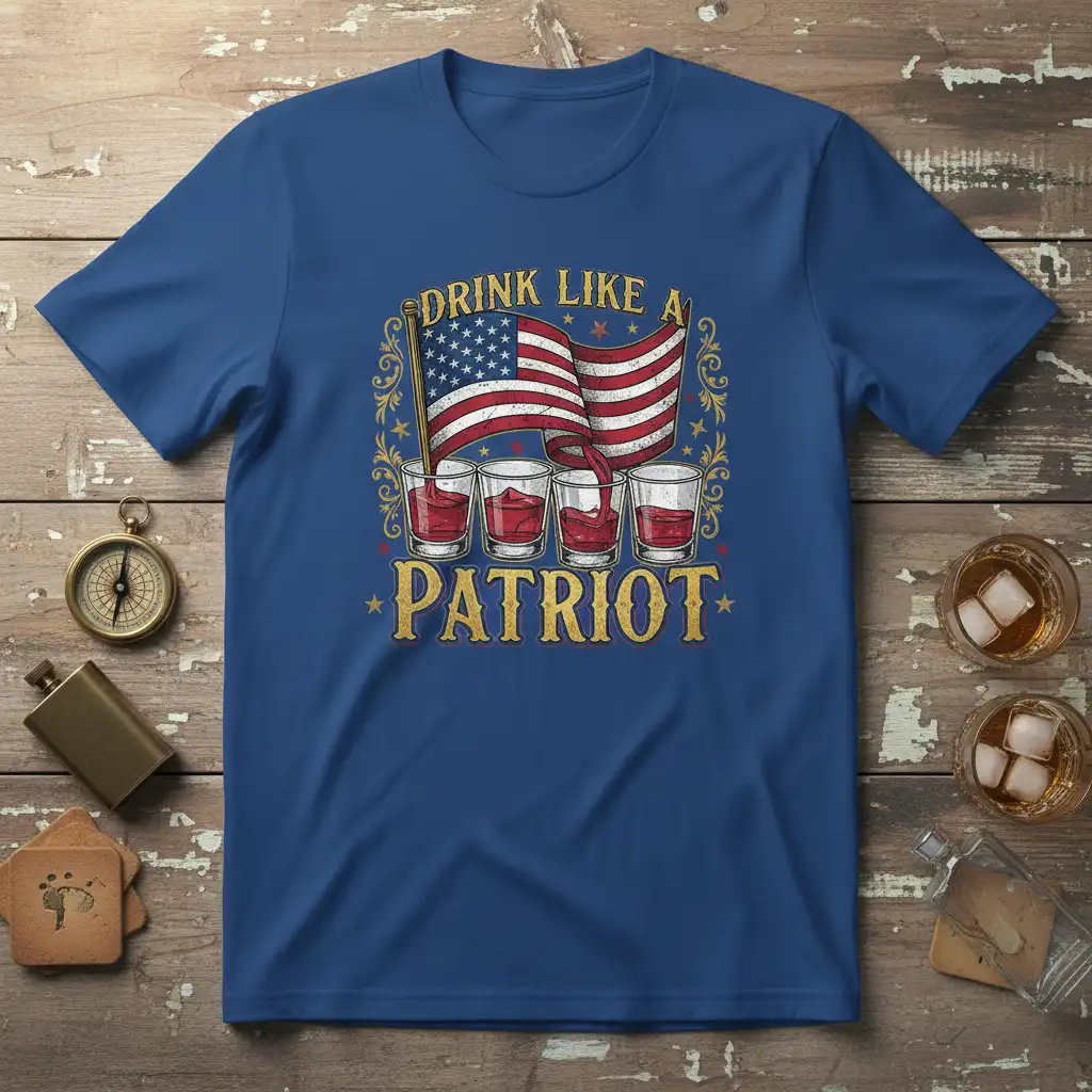 Pick from Black, Navy, Royal, Dark Heather, Red, and White to match your mood and wardrobe staples. Each colorway keeps the DRINK LIKE A PATRIOT design clear and photo-ready for everyday wear.