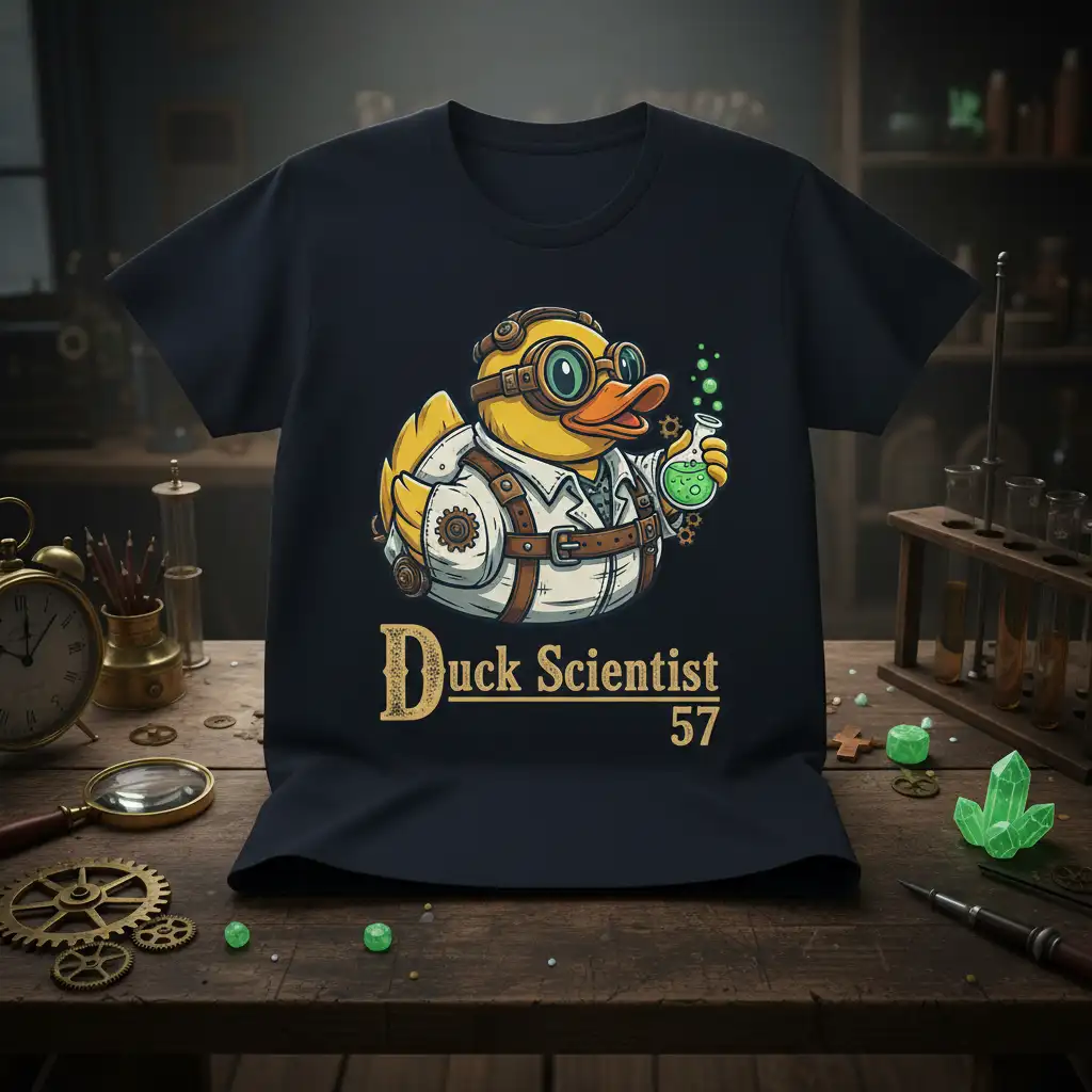 Duck Scientist 57 is more than just a t-shirt; it’s a statement piece for the curious mind and the lover of all things science. This design captures the essence of innovation with a playful steampunk twist, featuring a charming duck ready to conduct its next groundbreaking experiment. It’s the perfect way to express your passion for discovery and add a touch of whimsy to your everyday attire. Embrace your inner scientist and let this tee spark conversations.