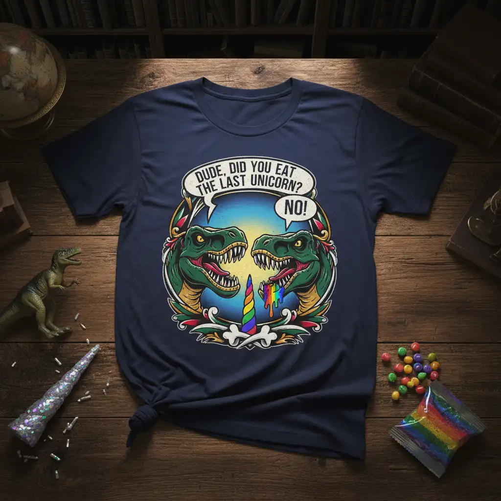 The Ultimate “Dude, Did You Eat The Last Unicorn? NO!” T-Rex Shirt