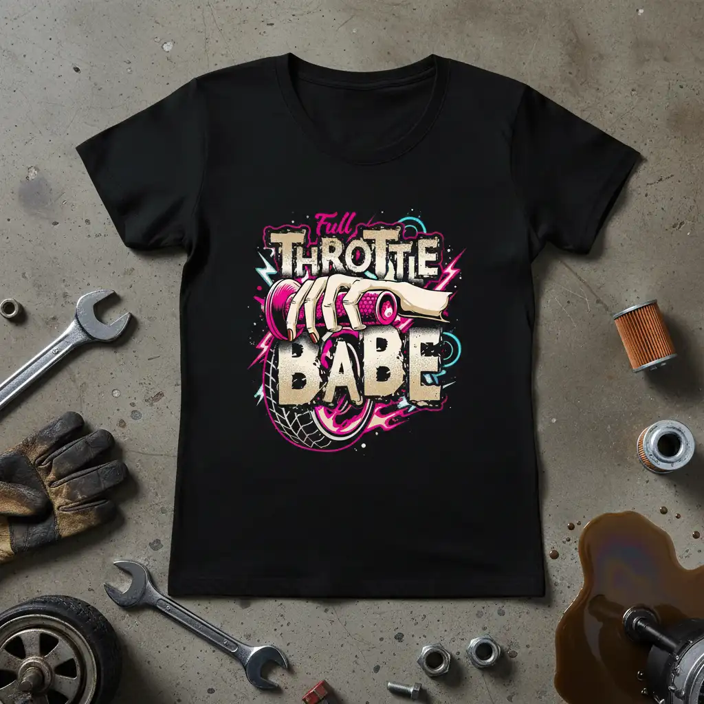 The “Full Throttle Babe” design is a testament to the growing number of women making their mark in the automotive industry and community. It’s a tribute to strength, skill, and the shared passion that connects drivers, racers, and mechanics alike. Wear it proudly and let the world know your commitment to the fast lane.