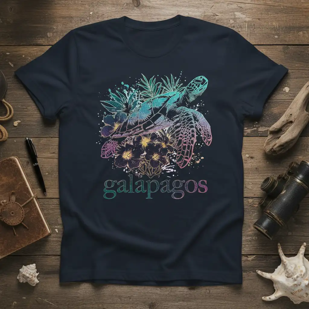 Galapagos Sea Turtle Design captivates with its stunning depiction of marine life amidst vibrant tropical flora, making it an ideal choice for travelers and nature enthusiasts alike. This t-shirt serves as a beautiful reminder of the unique biodiversity found in the Galapagos Islands, offering a wearable piece of paradise. It’s designed to be a conversation starter, celebrating the majesty of sea turtles and the exotic beauty of their island home. This apparel is perfect for anyone dreaming of or reminiscing about an unforgettable Ecuadorian adventure.