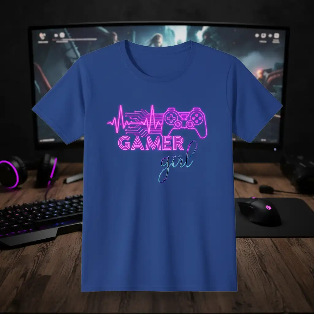 Gamer Girl passion comes alive with this electrifying t-shirt, designed for those who live and breathe video games. The vibrant neon graphic perfectly captures the thrill and excitement of the gaming world, making it a must-have for any dedicated player. This tee is more than just apparel; it’s a statement of identity for the modern female gamer, blending style with a love for digital adventures. It’s crafted for comfort and designed to stand out, ensuring you look as good as you play.
