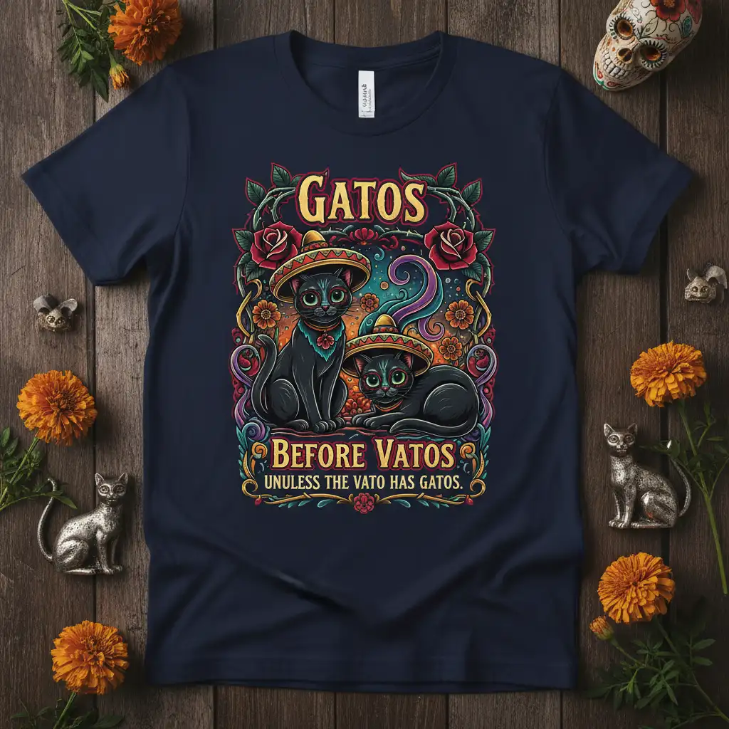 This “Gatos Before Vatos Unless The Vato Has Gatos” t-shirt is more than just a piece of clothing; it’s a statement of identity for cat lovers everywhere. Its unique design, comfortable fit, and humorous appeal make it a must-have item. Don’t miss out on the chance to own this hilarious and stylish tee. Grab yours today and let the world know where your true loyalties lie!