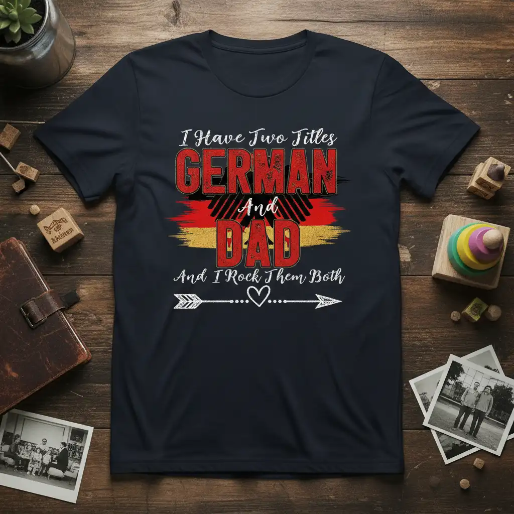 I Have Two Titles German And Dad And I Rock Them Both. This t-shirt is a powerful declaration for any father who proudly embraces his German heritage and his role as a dad. It’s designed for those who understand the importance of both, celebrating the unique blend of identity and family. The striking design is perfect for showing off pride and making a statement wherever you go. It’s more than just apparel; it’s a badge of honor for the modern German father.