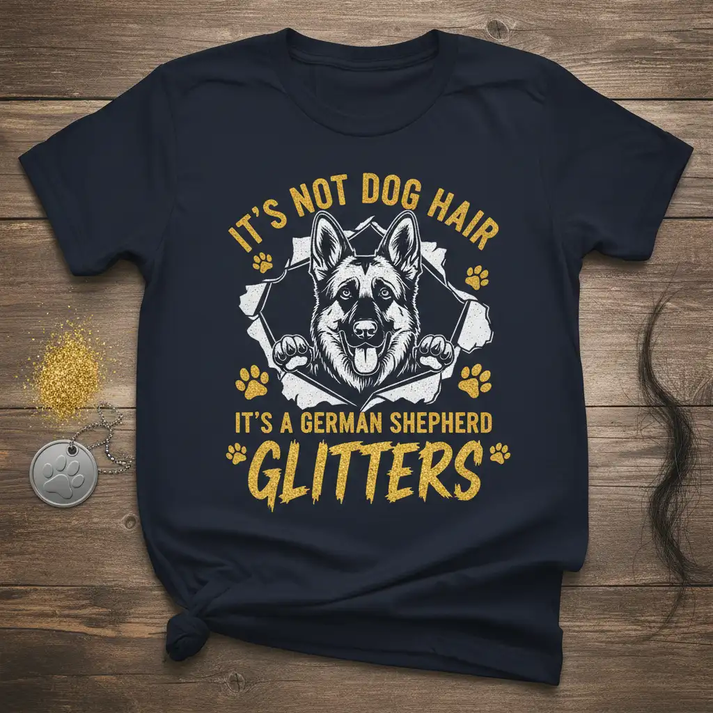 Don’t miss out on the chance to own this fantastic “It’s Not Dog Hair It’s a German Shepherd Glitters” t-shirt. It’s the ultimate way to celebrate your German Shepherd and the sparkle they bring to your life. Order yours now and wear your love for your furry best friend with pride. This tee is more than just clothing; it’s a testament to the unwavering bond between a person and their German Shepherd, making every moment a little more dazzling.