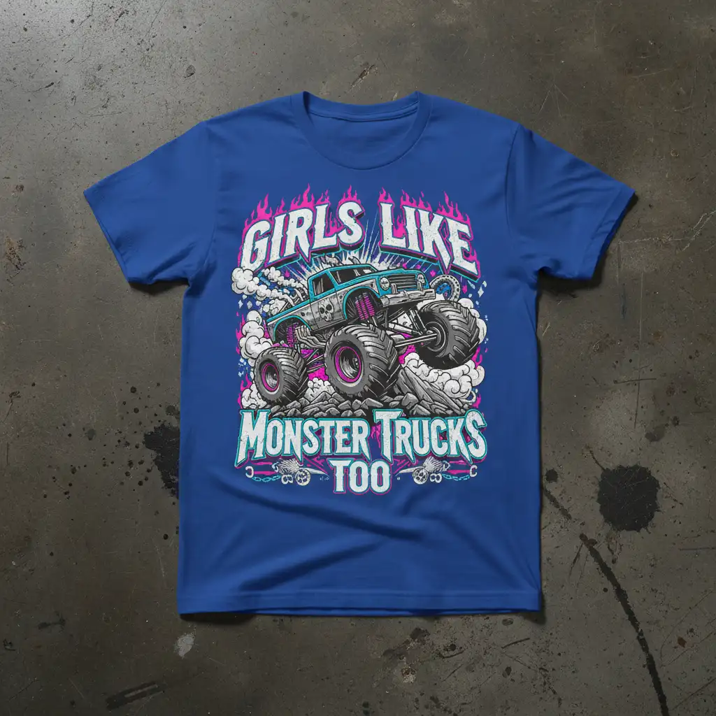 Girls Like Monster Trucks Too, this statement t-shirt is designed for every woman who feels the rumble of the engine and the thrill of the track. It’s more than just apparel; it’s a declaration of passion for the raw power and exhilarating spectacle of monster trucks. This design embraces the spirit of female motorsport fans, showcasing that enthusiasm for these colossal machines transcends traditional boundaries. Wear it proudly to rallies, casual outings, or anywhere you want to express your love for all things monster truck.