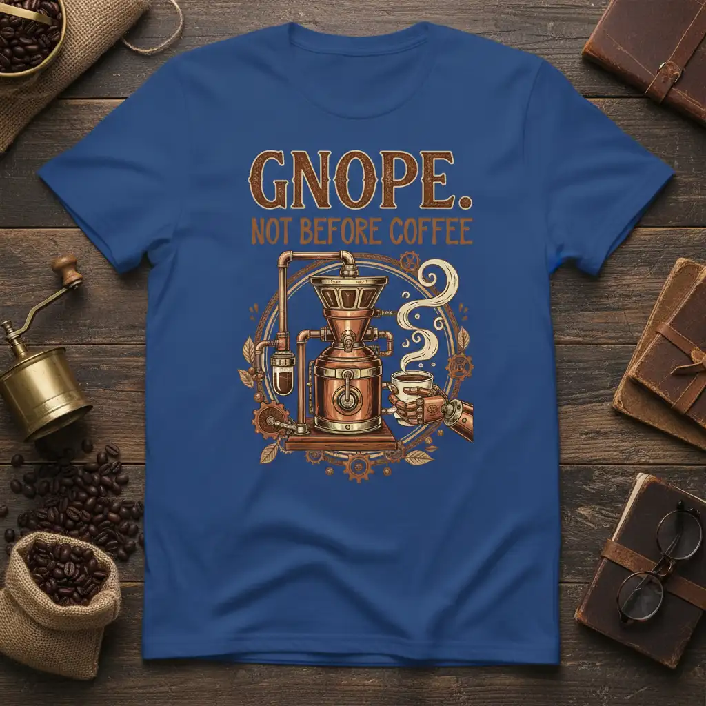 Don’t wait to add this essential piece to your wardrobe. The “Gnope. Not Before Coffee” t-shirt is more than just apparel; it’s a badge of honor for coffee lovers everywhere. It combines comfort, style, and a humorous message that speaks volumes about your morning priorities. Order yours now and make a statement that every coffee enthusiast will understand and appreciate. It’s time to get your caffeine fix and conquer the day!