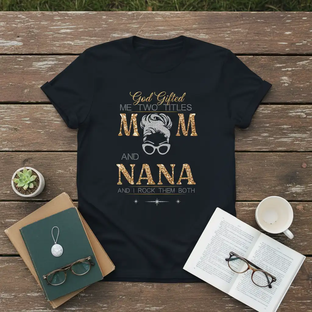 This design is a thoughtful tribute to the incredible women who gracefully navigate the joys and responsibilities of being a Mom and a Nana. It’s an acknowledgment of their unwavering love, tireless efforts, and the unique bond they share with their children and grandchildren. The glitter elements catch the light, symbolizing the sparkle and joy they bring into our lives. This shirt is designed to make them feel celebrated and appreciated for all that they do.