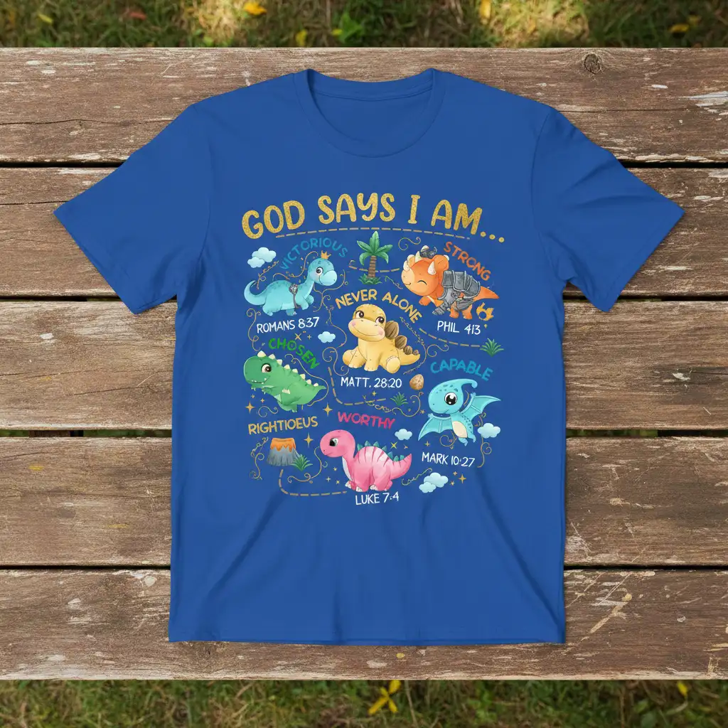 Searching for a meaningful gift? This “God Says I Am” t-shirt is an ideal choice for birthdays, holidays, or just because. It’s a thoughtful present for children, teens, and adults who love dinosaurs and want to express their Christian faith. The combination of adorable graphics and inspiring messages makes it a unique and cherished item that will be worn and loved for years to come.