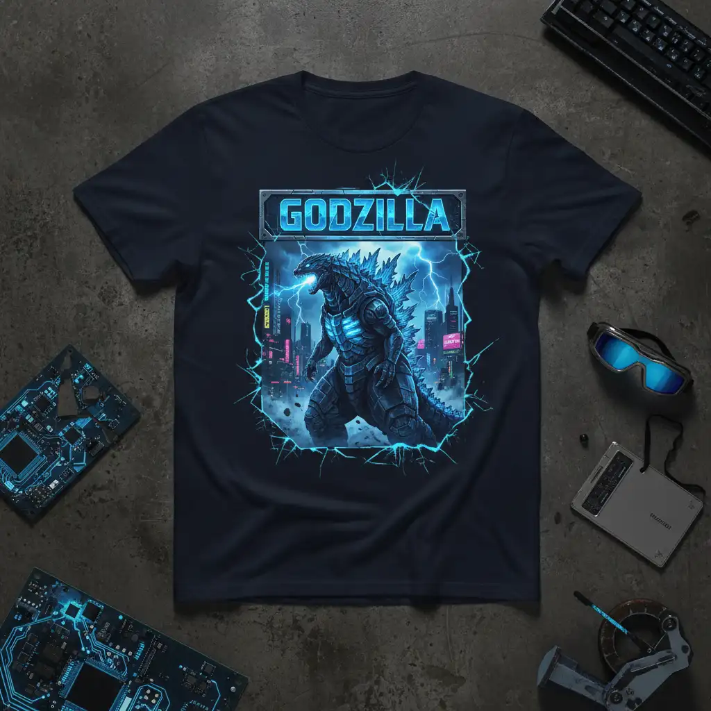 This Godzilla T-Shirt is designed for true fans who appreciate the intricate details and dramatic flair of the kaiju genre. The artwork is rendered with a modern, vibrant aesthetic, highlighting Godzilla’s scaly texture and glowing atomic core. The surrounding urban landscape and lightning effects create a sense of urgency and immense power, making the design truly dynamic. It’s a piece that stands out and showcases your passion for this legendary monster.