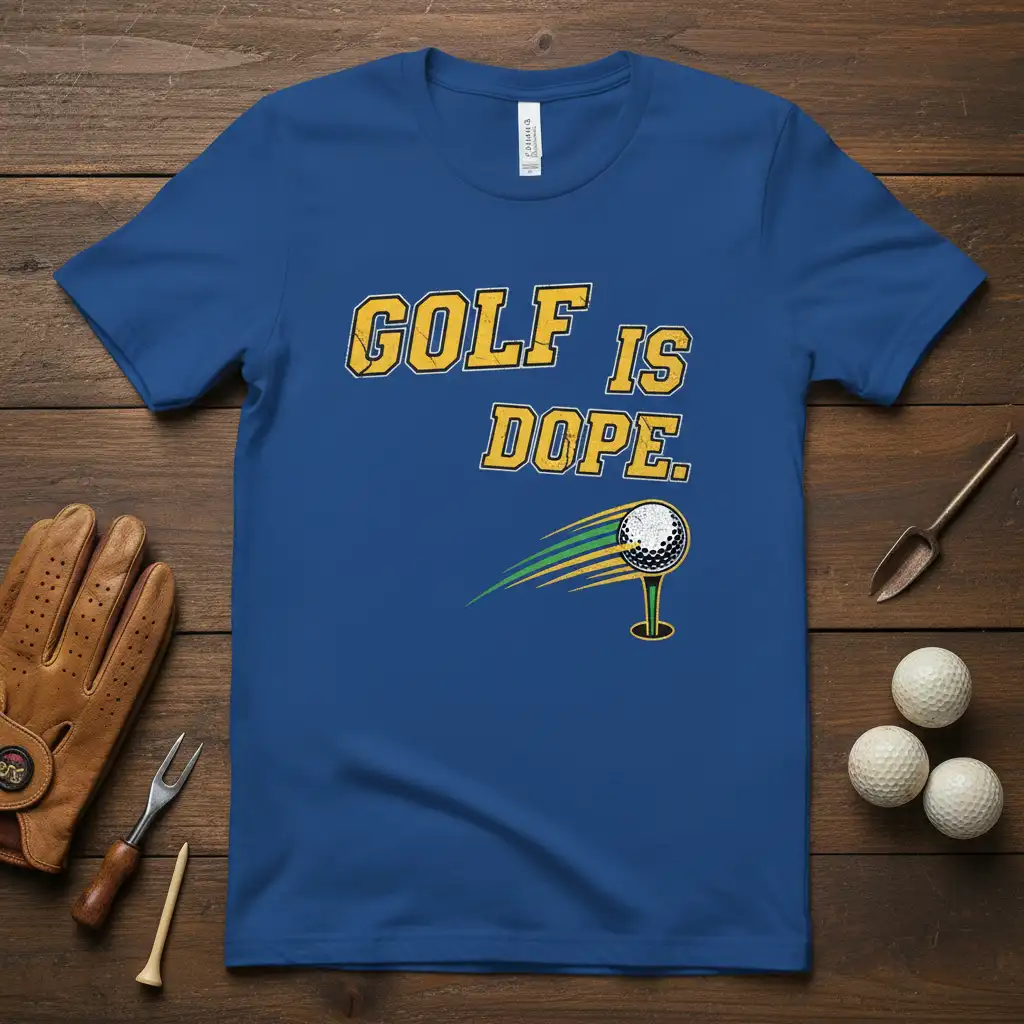 This tee is more than just clothing; it’s a badge of honor for golf lovers. The phrase “Golf Is Dope” perfectly encapsulates the exhilaration and satisfaction that comes from a great game. It’s a modern and catchy way to express your passion, resonating with a younger generation of golfers as well as those who have loved the game for years. The design is clean, impactful, and embodies the spirit of fun and competition that defines golf.