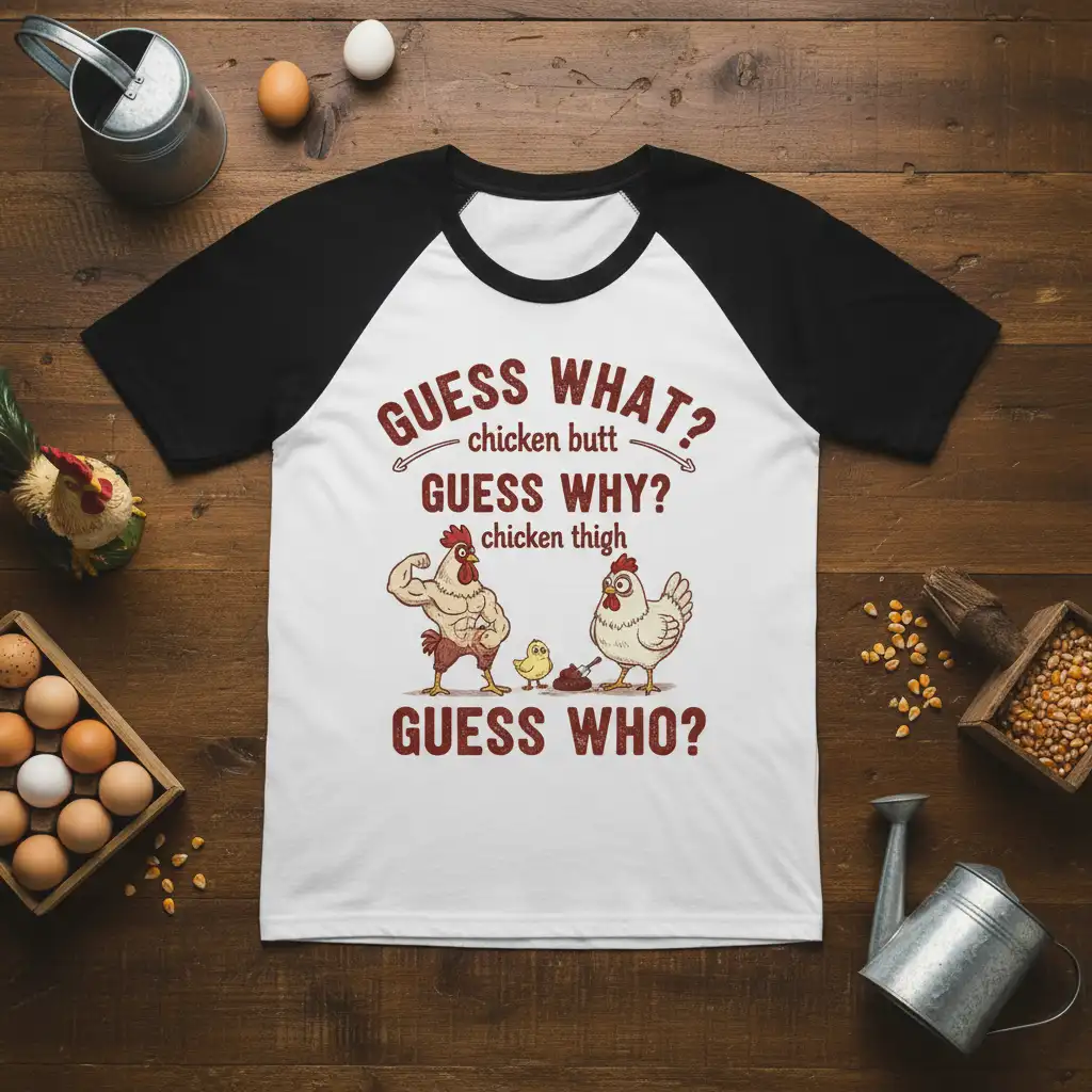Don’t miss out on the chance to own this hilarious GUESS WHAT chicken butt GUESS WHY chicken thigh GUESS WHO t-shirt. It’s the ultimate expression of farm humor and a guaranteed mood booster. Perfect for gifting or adding a fun new piece to your own collection, this tee is sure to become a fast favorite. Grab yours today and let the laughter begin!