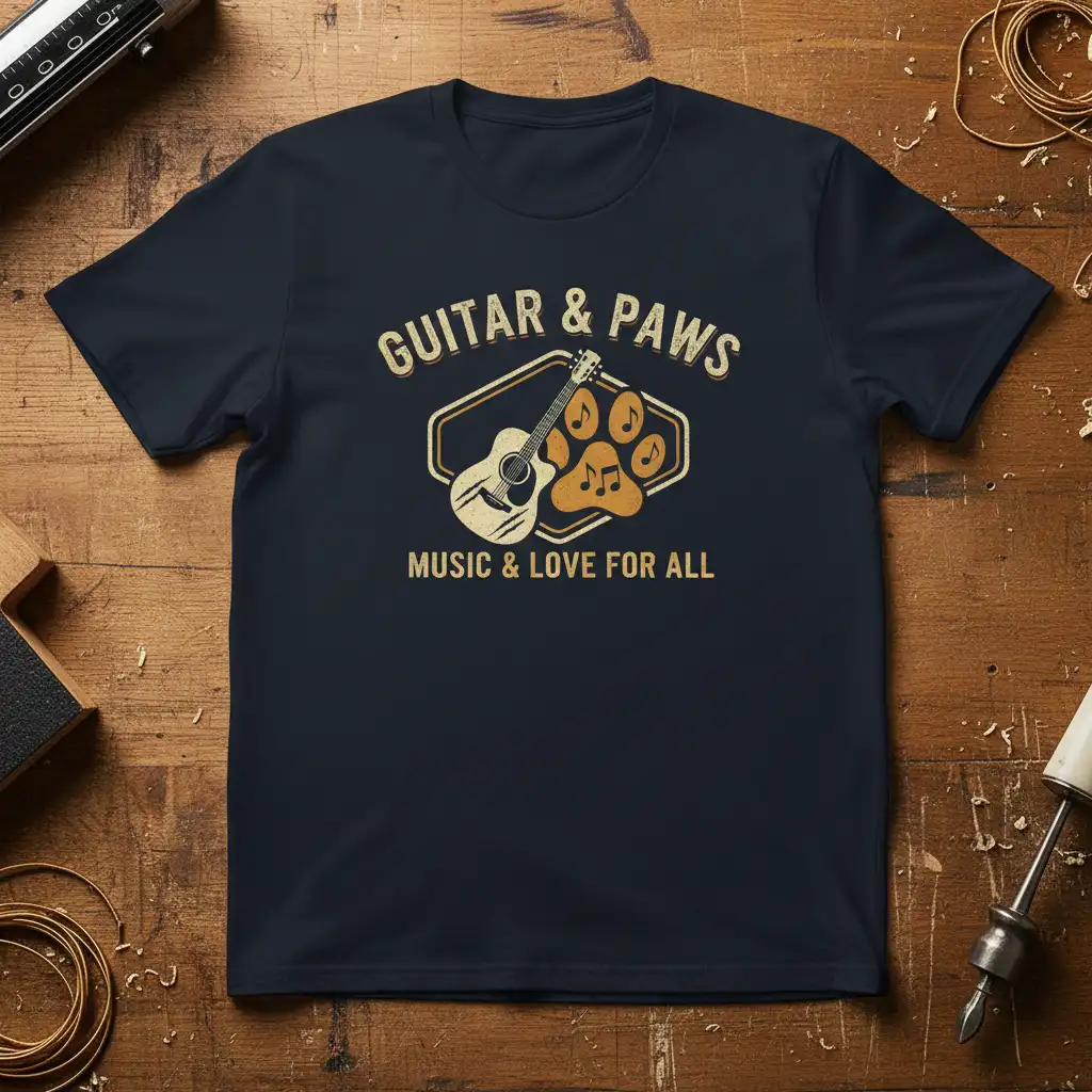 GUITAR & PAWS MUSIC & LOVE FOR ALL T-Shirt: A Symphony of Style